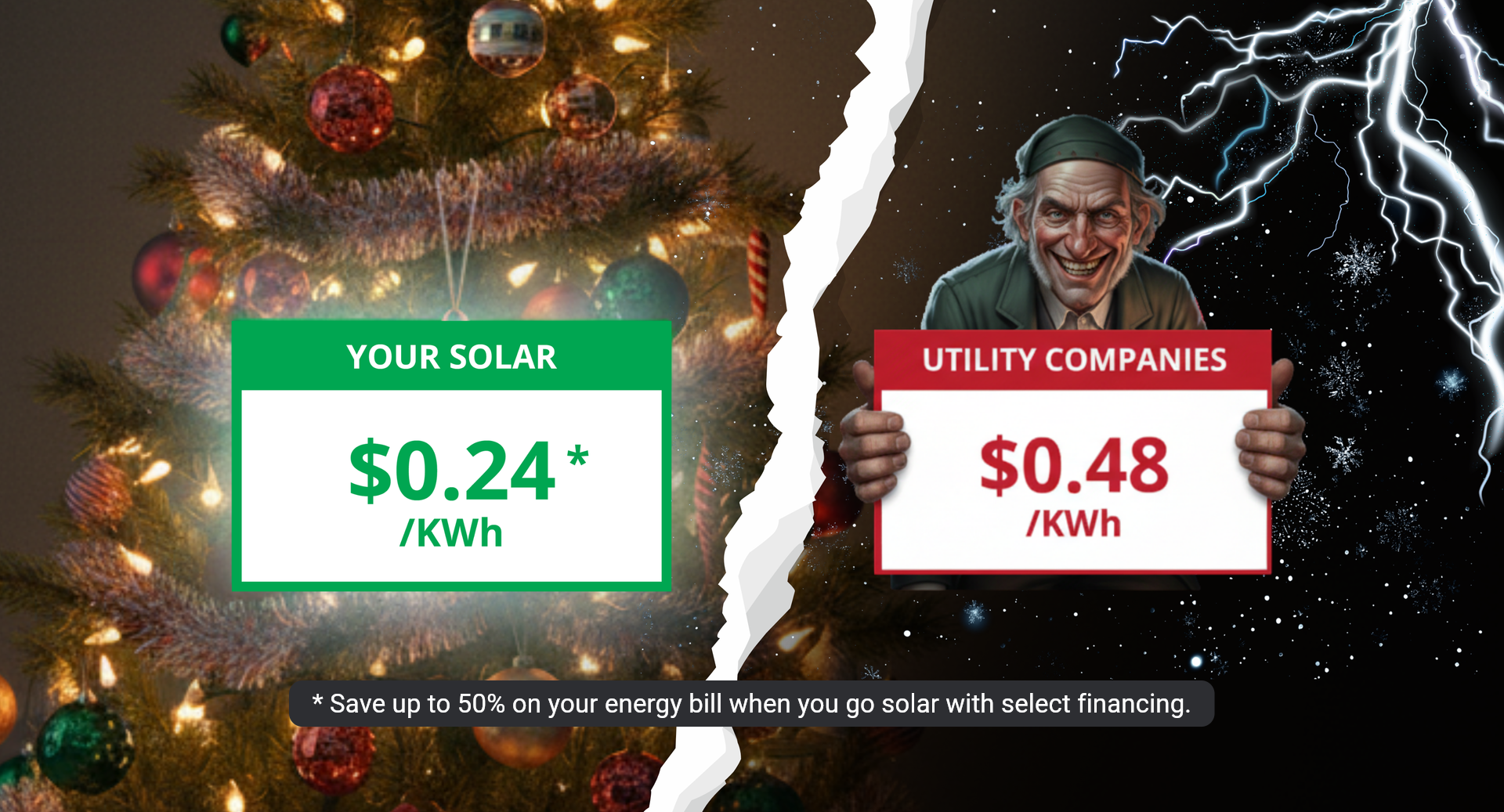 Central California, stop getting Scrooged! You're paying the highest electric bills in the country up to $0.48/KWh from utility companies, and rates continue to rise.